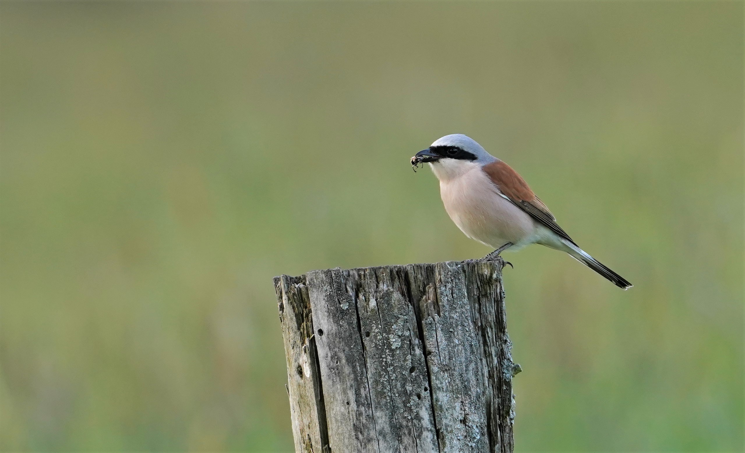 wie stets erneut eine sehr gelungene Aufnahme diese Neuntöters mit dem Insekt im Schnabel: Das Tier ist in seiner zarten Figürlichkeit detailpräzise abgebildet und von einem angemessen Bokeh eingefasst.