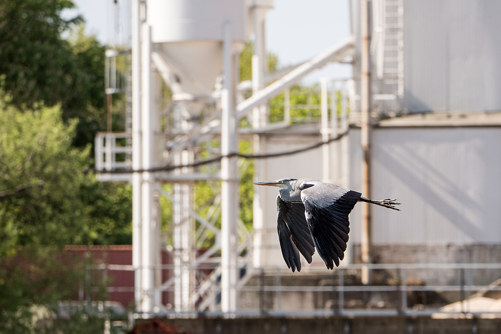 grey heron in the city